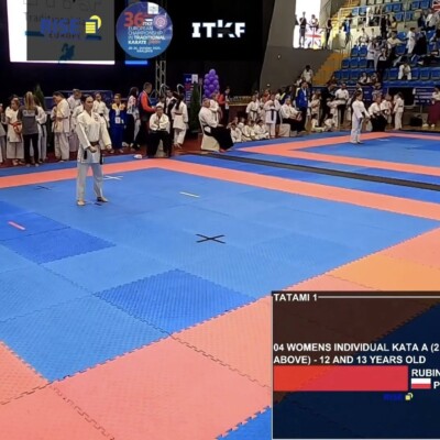 Brawa dla zawodników. Wszystkie występy były bardzo mocne, zawodnicy prezentowali bardzo wysoki poziom, dodatkowo warto zauważyć, że nawet przegrane pojedynki były bardzo wyrównane, wszyscy nasi zawodnicy przegrywali 2:3, ale taki jest właśnie sport🤷‍♂️ Kaja przegrała 0,1 pkt o finał w kata i 2:3 o finał w kumite, Olaf 2:3 o finał, Pola i Kalina również bardzo dobre występy💪
