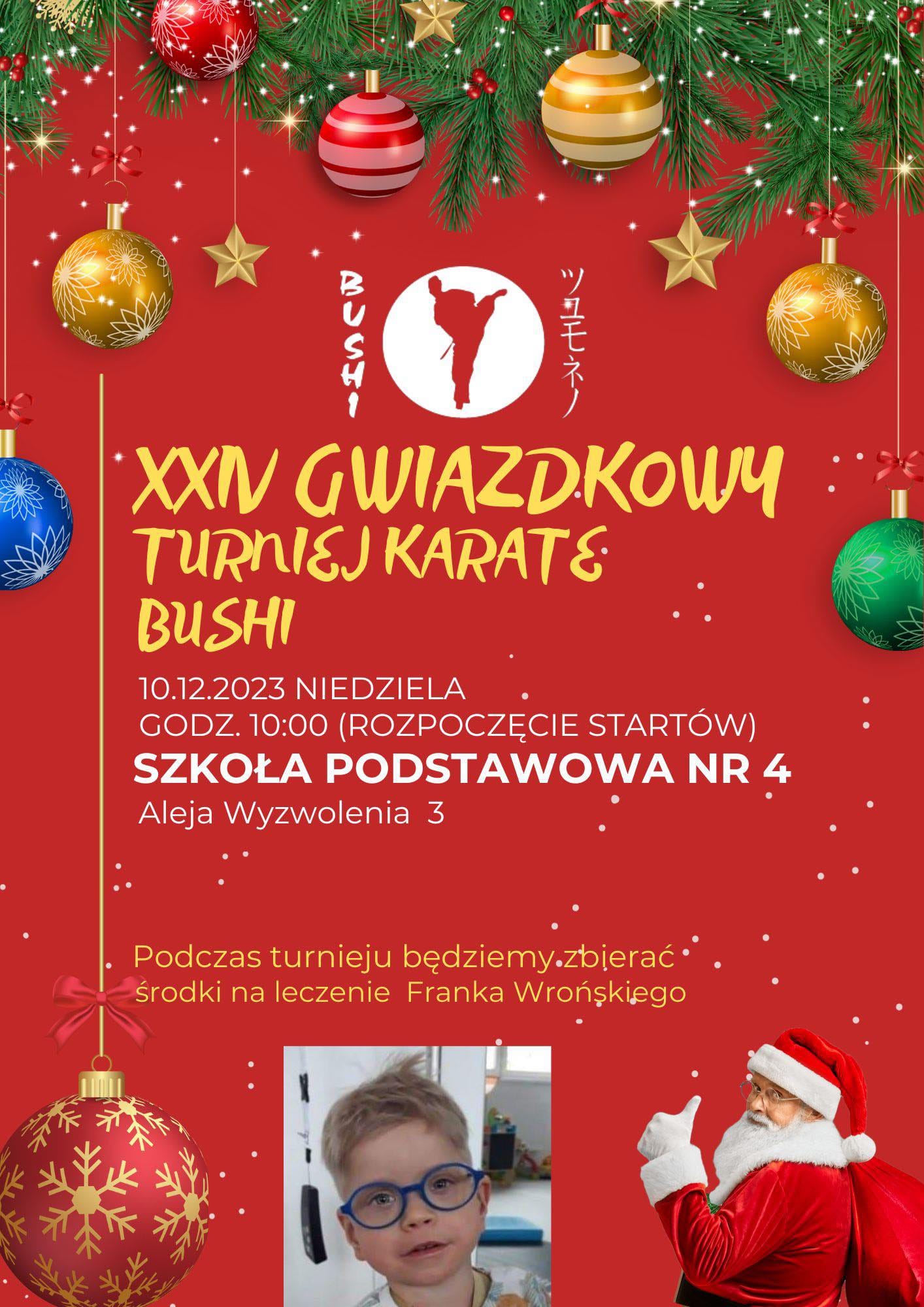 Już 10 grudnia odbędzie się XXIV Klubowy Turniej Karate BUSHI (edycja Gwiazdkowa).|Tegoroczny turniej odbędzie się w Szkoła Podstawowa nr 4 w Aleksandrowie Łódzkim (wejście od strony boiska).